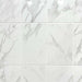 The tile features a shiny finish, which gives it a polished and refined appearance. The white color of the tile adds a clean and fresh look to any room, and the marble look finish creates a classic and timeless look that is popular in traditional and modern design.